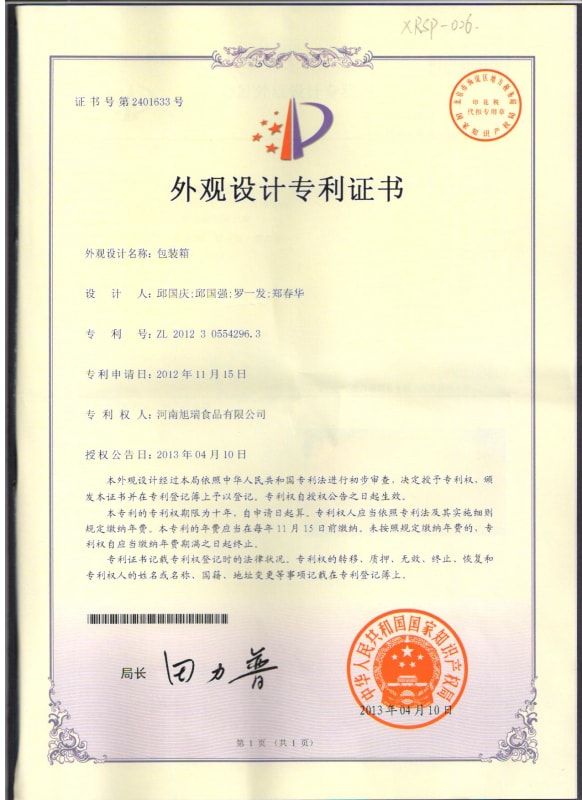 Patent certificate